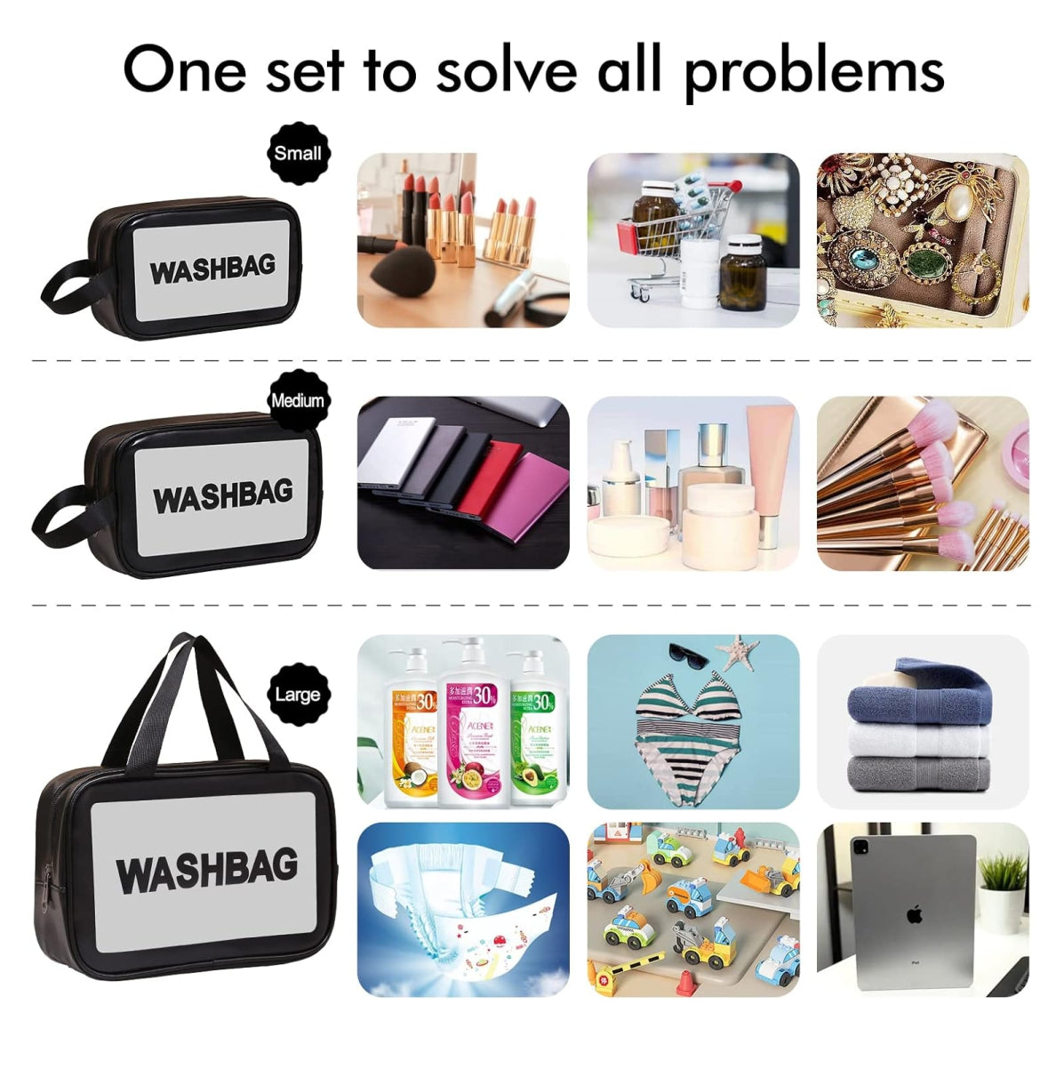Bolsa Viajera Cosmetiquera Lavable set de 3 TamañosBolsas de aseo de viaje hechas de material de poliuretano suave pero duradero y material de PVC translúcido texturizado esmerilado, impermeable y fácil de limpiar, la cremallera de metal con una gran apertura en la parte superior es muy suave y duradera, la bolsa de lavado es ligera y tiene una gran capacidad, fácil de comprimir y almacenar.Dimensiones:Cosmetiquera Grande: 30 cm (largo) x 21 cm (alto) x 10 cm (profundidad)Cosmetiquera Mediana: 26 cm (largo) x 16 cm (alto) x 7 cm (profundidad)Cosmetiquera Pequeña: 21 cm (largo) x 12 cm (alto) x 7 cm (profundidad)Peso: Aproximadamente 400 g (set completo)Materiales:Exterior: Poliéster impermeable de alta calidadForro Interior: Poliéster resistente y fácil de limpiarCremalleras: Cremalleras de nylon resistenteCONTENIDO:Bolsa Viajera Cosmetiquera Lavable Set X3 TamañosSiguenos por nuestro canal de Telegram  https://t.me/Comprasdeverdad💥Nuevos productos  :( Agotados⚡Reposicion de stockGARANTIA: 30 días por defectos de fábrica, es decir, si el producto llegó roto o sin funcionamiento. (Recuerda procesarla debidamente por el módulo de garantías de DROPI)REQUISITOS OBLIGATORIOS:Caso de pedido ID:Guía de envió inicial:Novedad (Foto o Video donde se evidencie la novedad que indica):Estado del producto:* Debe estar en las condiciones que se recibió, con su empaque original, con las etiquetas, sellos de seguridad, y contar con todas sus partes y/o accesorios. Sin rayones ni manchas. Se recibirá únicamente en óptimas condiciones.